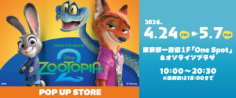 ズートピア2のポップアップストアが、2026年4月24日〜5月7日までの期間、東京駅一番街1階「One Spot」にて開催!