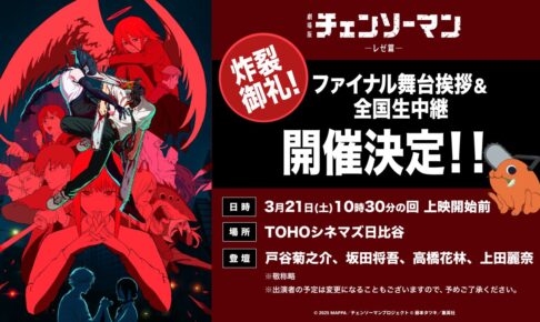 劇場版「チェンソーマン レゼ篇」のファイナル舞台挨拶 & 全国生中継が、2026年3月21日に開催!