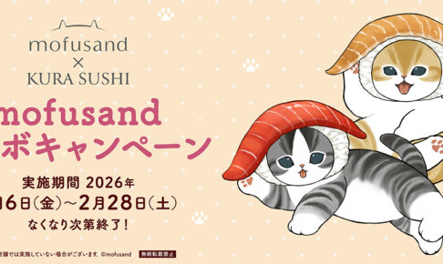 イラストレーターの「ぢゅの」さんが描くかわいい猫たちの世界「mofusand」× 無添くら寿司全国にて、2026年2月6日よりコラボキャンペーンが開催される。「mofusand × 無添くら寿司全国」では、お寿司の被り物をかぶったにゃんこたちの描き下ろし特典プレゼントや、ビッくらポンの景品など盛りだくさん!