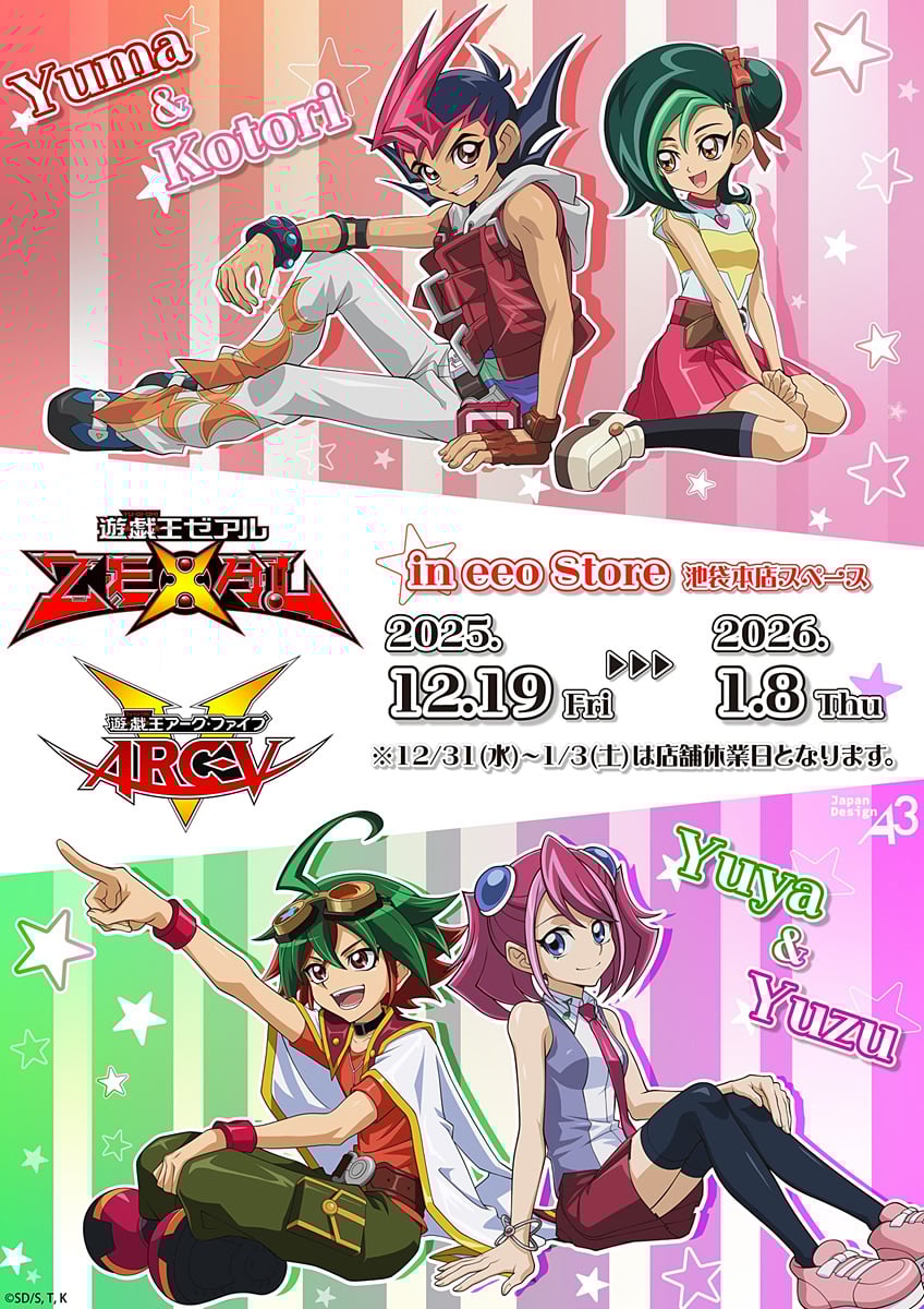 高橋和希先生による漫画を原作とする大人気シリーズ「遊☆戯☆王ZEXAL & 遊☆戯☆王ARC-V」のポップアップストアが、eeo Store 池袋本店 POP UP スペースにて2025年12月19日〜2026年1月8日まで開催される。