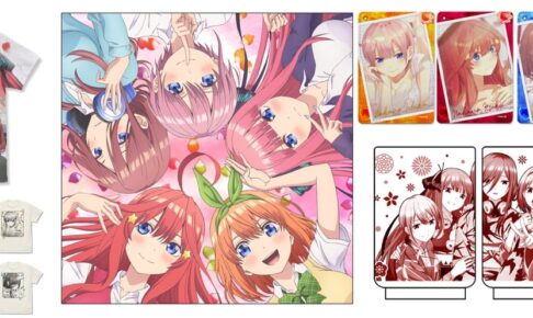 春場ねぎ先生の人気漫画を原作としたテレビアニメ「五等分の花嫁 (ごとよめ)」より、中野家の五つ子姉妹「一花」「二乃」「三玖」「四葉」「五月」が描かれたグッズが、好評につき9月上旬に再販される。グッズは、Tシャツ・高精細プリントされたクッションカバー・美濃焼の湯のみ・フルカラーパスケースの全4種類がラインナップ。