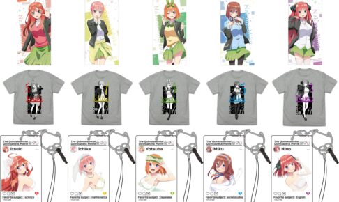 春場ねぎ先生による人気漫画を原作とし、5月20日に公開された映画が大ヒット上映中の「五等分の花嫁」より、五つ子(一花・二乃・三玖・四葉・五月)がデザインされた、これからの季節にぴったりな「Tシャツ」「ビッグタオル」「SNS風アクリルキーホルダー」等が、現在予約受付中!来たる暑い夏を、五つ子と一緒に乗り越えよう!