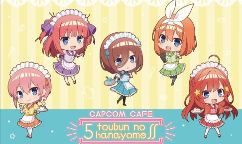 春場ねぎ先生による人気漫画を原作としたテレビアニメ「五等分の花嫁」より× カプコンカフェ池袋にて、2022年2月25日〜4月14日までの期間限定で「五等分の花嫁カフェ」コラボ開催!「五等分の花嫁」をイメージしたオリジナルコラボメニューやデフォルメイラストを使用した限定グッズが登場!