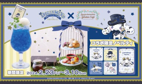 世代を超えて愛されるサンリオの人気キャラクター「シナモロール」が3月6日に誕生日を迎えることを記念し、サンリオキャラクターズ ガーデンカフェ東京にて2024年2月23日〜3月10日まで「シナモロール × DOLLY MIX(どーりーみっくす)」コラボが開催される。シナモンの誕生日を祝う特別メニューが登場!