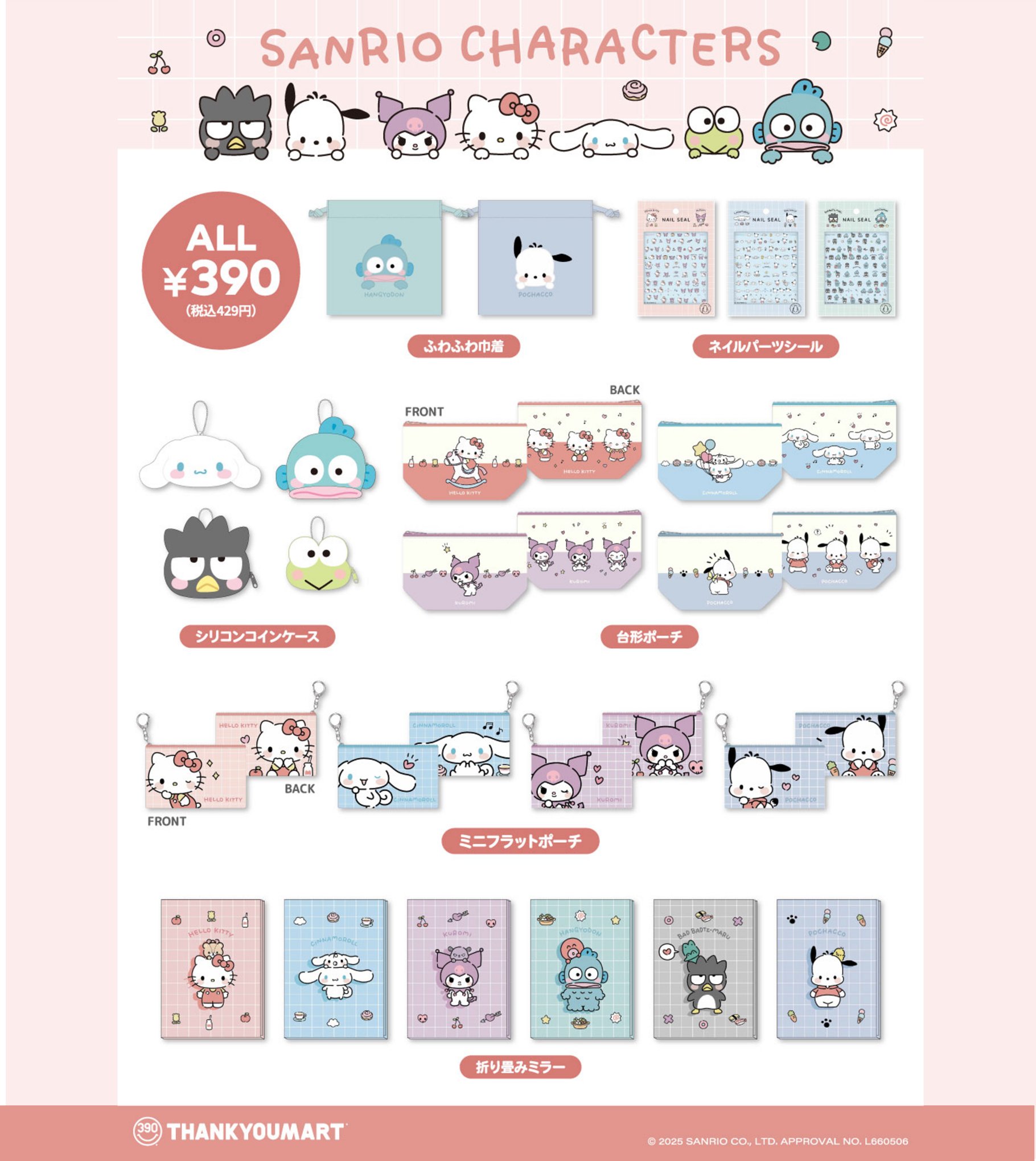 世代を超えて愛される「サンリオキャラクターズ」× サンキューマート全国にて、2026年1月上旬より新作アイテムが発売される。ハローキティ・シナモロール・ポチャッコ・クロミ・けろけろけろっぴ・ハンギョドン・バッドばつ丸ら人気キャラクター達のゆるっとかわいい新作グッズが多数ラインナップ!