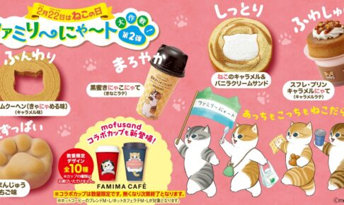 イラストレーターの「ぢゅの」さんが描き出す可愛い猫たちの世界「mofusand」× ファミリーマート全国にて、2024年2月13日よりコラボキャンペーン「ファミリーにゃ〜ト大作戦 第2弾」が開催される。2月22日の“猫の日”にあわせ、ねこモチーフのオリジナル商品が全19種ラインナップ!