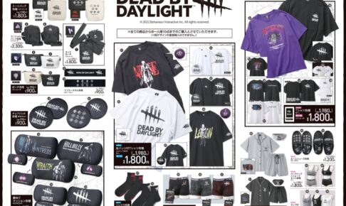 大人気サバイバルホラーゲーム「Dead by Daylight (デッドバイデイライト)」× ドン・キホーテ全国にて、2022年4月16日より「デッドバイデイライト」のコラボアパレルグッズが発売される。DBDロゴを使用した缶バッジ付きTシャツや、人気キラーが描かれたTパーカーなどのアイテムがラインナップ!