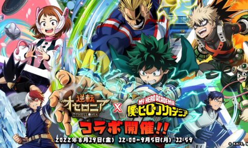 週刊少年ジャンプにて連載中「堀越耕平」先生による大人気漫画を原作とするTVアニメ「僕のヒーローアカデミア (ヒロアカ)」× アプリゲーム「逆転オセロニア」のコラボイベントが、2022年8月19日より開催決定!「逆転オセロニア」のゲーム内にヒロアカのキャラクター総勢14名が登場する。