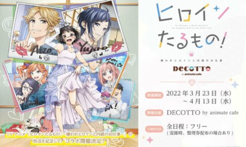 2022年4月7日からの放送が決定したテレビアニメ「ヒロインたるもの!〜嫌われヒロインと内緒のお仕事〜」× DECOTTO by animate cafe池袋にて、2022年3月23日〜4月13日までの期間限定でコラボカフェが開催される。コラボ内容の詳細発表に先駆け、描き起こしミニキャライラストが公開された。