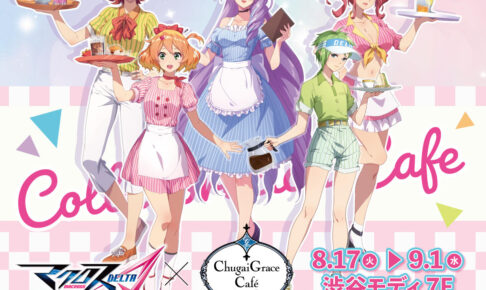 河森正治監督 × サテライト制作による大人気SFロボットアニメ「マクロスΔ」× Chugai Grace Cafe渋谷モディにて2021年8月17日〜9月1日までの期間限定で「マクロスカフェ」にてコラボ開催!キャラクターのカラーをモチーフにしたオリジナルコラボメニューやカフェ店員の衣装に身を包んだグッズが登場!