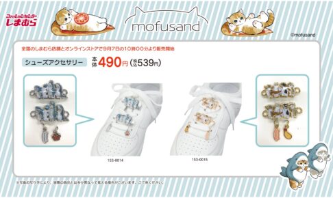 イラストレーターの「ぢゅの」さんによる可愛い猫たちの世界「mofusand」× ファッションセンター「しまむら」全国にて、2022年9月7日よりコラボグッズが発売される。もふもふにゃんこ達が、しまむら限定の可愛らしい「シューズアクセサリー」となってラインナップ!