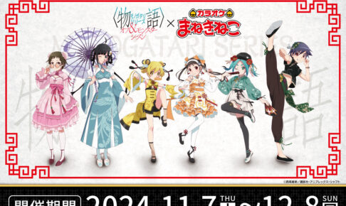 西尾維新先生による人気小説原作の「化物語」を始めとする「物語シリーズ」× カラオケまねきねこにて、2024年11月7日〜12月8日までの期間限定でコラボ開催!「物語シリーズ × まねきねこ」コラボでは、オリジナルノベルティー付きドリンクや、待ち受け画像がもらえる歌唱キャンペーンが登場!