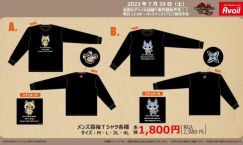 カプコンが贈る大人気ハンティングアクションゲーム「MONSTER HUNTER RISE: SUNBREAK (モンスターハンターライズ : サンブレイク)」× しまむらグループが展開するカジュアルブランド「Avail (アベイル)」全国にて、2023年7月29日よりコラボアパレル & グッズが発売される。