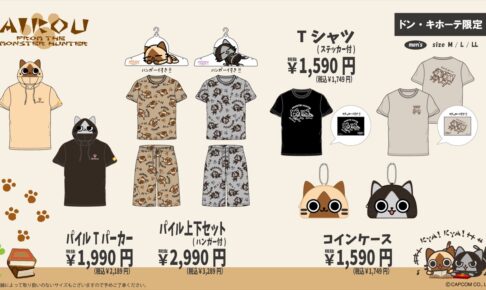 カプコンが贈る大人気ハンティングアクションゲーム「モンスターハンター」シリーズに登場する獣人族“アイルー”などをデフォルメした「AIROU FROM THE MONSTER HUNTER」のグッズが、全国のドン・キホーテにて2023年5月13日より発売。二頭身にデフォルメした可愛いアイルーとメラルーが登場!