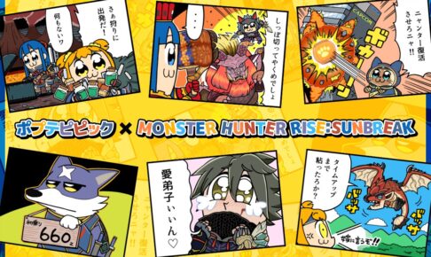 大人気ハンティングゲーム「モンスターハンターライズ:サンブレイク」× 「ポプテピピック」などの人気作を手掛ける漫画家の「大川ぶくぶ」先生のコラボグッズが、カプコン直営店舗「CAPCOM STORE (カプコンストア)」にて2023年9月8日より発売される。オンラインストアでは9月4日より取り扱いスタート!