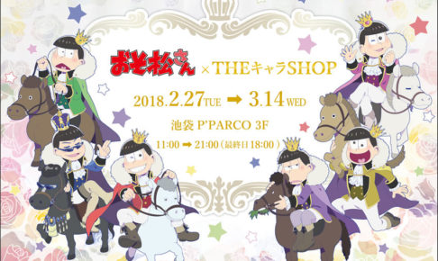 6つ子達が王子様に!?大人気TVアニメ「おそ松さん」x THEキャラSHOP池袋パルコにて2/27から期間限定ショップ開催決定!!イベント限定・先行商品のグッズが登場!!開催期間は2018年2月27日〜3月14日まで!!