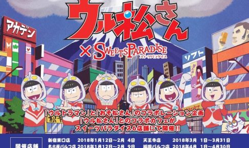 TVアニメ第2期放送中の大人気「おそ松さん」が「ウルトラマン」とのコラボレーション企画!『ウル松さん』x スイーツパラダイス全国6店舗にてコラボカフェの開催決定!スイパラ新宿・名古屋の2018/1/12〜を皮切りに全国でスタート!