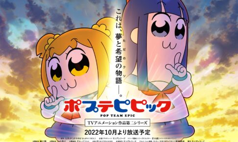 2022年10月より第2期が放送予定、大川ぶくぶ先生による大人気漫画を原作としたTVアニメ「ポプテピピック (ポプテピ)」の新ビジュアルが解禁。新ビジュアルには、太陽をバックに背中合わせで立つポプ子とピピ美が描かれた。また、2022年7月15日からはYouTubeにて第1期のプレミア配信もスタートする。
