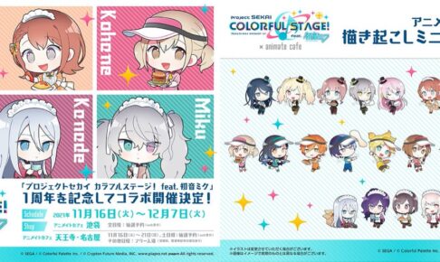 スマホ向けゲーム「プロジェクトセカイ カラフルステージ! feat. 初音ミク (プロセカ)」の1周年を記念して、アニメイトカフェ3店舗(池袋・大阪・名古屋)にて2021年11月16日〜12月7日まで「プロセカ」コラボカフェを開催!みのり・こはね・一歌・ミクなど合計26人の描き下ろしイラストが登場予定!