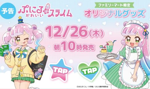 『週刊コロコロコミック』にて連載中、まえだくん先生による人気漫画を原作とするTVアニメ「ぷにるはかわいいスライム」× ファミリマートによるコラボグッズが、2024年12月26日より登場!「ぷにかわ × ファミマ」では、ぷにるがギャルやメイドの衣装に身を包む描き下ろしイラストを使用したグッズがラインナップ!