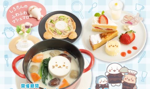 まっしろでふわふわなたてごとアザラシ「しろたん」× DISH UP新宿にて2023年1月4日〜2月15日までコラボレストランが開催される。「しろたん」コラボレストランでは、しろたんと仲間たちをイメージしたコラボメニューがお楽しみいただける他、描き下ろしイラストを使用したコラボカフェ限定グッズが登場!