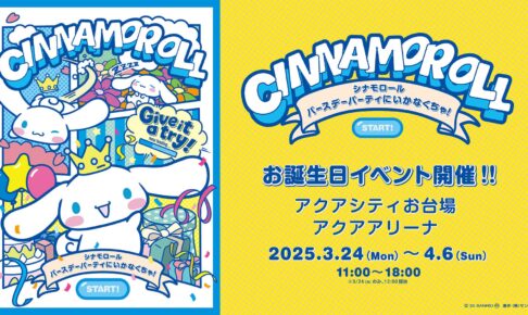 世代を超えて愛されるサンリオの人気キャラクター「シナモロール」 × アクアシティお台場にて、2025年3月24日〜4月6日までバースデーイベント「シナモロール バースデーパーティにいかなくちゃ!」が開催される。ハプニングに見舞われたシナモンを助けてパーティ会場まで送り届ける体験型イベントを実施!