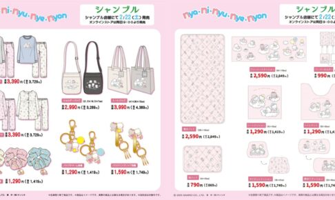世代を超えて愛されるサンリオの人気キャラクター「ニャニィニュニェニョン」 × シャンブル全国にて、2025年2月22日よりコラボグッズが順次発売される。パジャマやバッグ類、ルームグッズなど可愛いデザインのアイテムが多数登場! さらに、同日9時よりシャンブル公式オンラインでも発売!