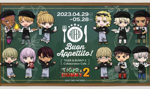 大人気アニメシリーズ第2作「TIGER & BUNNY2 (タイバニ2)」× Cassolo (カッソーロ) 東京にて2023年4月29日〜5月28日までコラボカフェが開催される。虎徹やバーナビーらをイメージしたコラボドリンクとコースメニューが楽しめる他、描き起こしイラストを使用した限定グッズが登場!