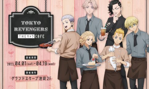 和久井健先生による人気漫画を原作としたTVアニメ「東京リベンジャーズ (東リベ)」× THEキャラカフェ池袋にて2023年4月1日〜4月19日までコラボカフェが開催される。武道・マイキー・千冬らをイメージしたメニューが楽しめる他、ウエイター風衣装を身に着けた描き下ろしイラストを使用したカフェ限定グッズが登場!