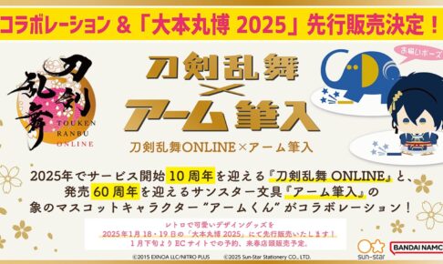 日本刀を擬人化した刀剣男士が活躍する大人気ゲーム「刀剣乱舞 ONLINE」× サンスター文具「アーム筆入」のコラボグッズが、2025年1月18・19日に開催される「大本丸博2025」にて発売決定。限定カラーのペンケースをはじめ、レトロなデザインが可愛いコラボグッズが多数ラインナップ!