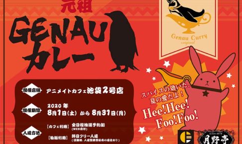 「ツキノ芸能プロダクション」所属タレントの公式カフェ「月野亭」× アニメイトカフェ池袋2号店にて2020年8月1日〜8月31日までの期間限定で8月テーマのコラボカフェ「元祖GENAUカレー」開催!8月にぴったりな熱々のカレーを中心としたコラボメニューやカレーにちなんだ赤を基調としたグッズが多数登場!