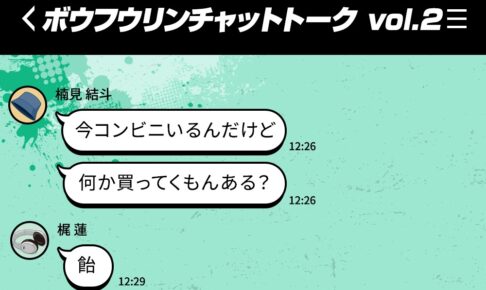 「にいさとる」先生による人気漫画を原作とするTVアニメ「WIND BREAKER」の公式Xアカウント・公式サイトにて、ボウフウリンメンバーチャットvol.2が公開!第2弾となる今回は2年生組の梶蓮・榎本健史・楠見結斗の日常会話が登場。コンビニに寄った楠見に毎回飴を要求する梶の様子が切り取られた。