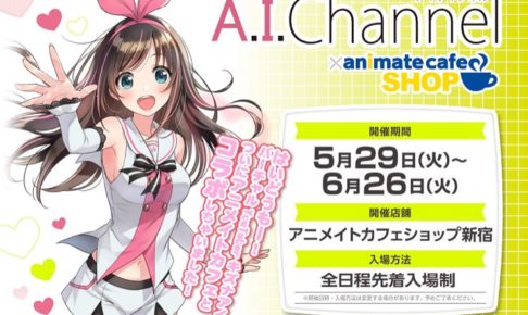 A.I.ChannelのバーチャルYouTuber「キズナアイ」× アニメイトカフェショップ新宿にて5/29からコラボカフェ開催決定!!キズナアイをイメージしたコラボメニュー、ノベルティー、オリジナルグッズが登場!!入場方法は全日先着入場制、コラボレーション開催期間は2018年5月29日〜6月26日まで!!