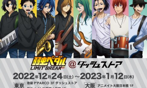 渡辺航先生による人気漫画を原作としたアニメ「弱虫ペダル (弱ペダ) -LIMIT BREAK-」のポップアップストアが、プリンセスカフェ下北沢 / イオン相模原にて2022年12月5日〜12月15日まで開催される。描き起こしミニキャライラストを使用した新作グッズが多数ラインナップ!