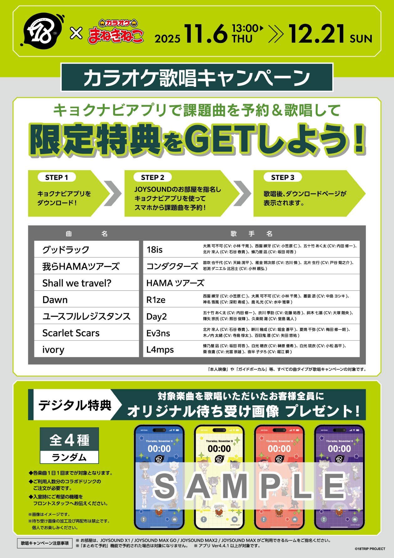 18TRIP × カラオケまねきねこ 11月6日よりコラボ第2弾開催!