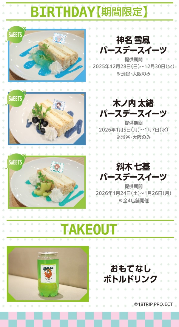 2025年12月25日よりTOWER RECORD CAFE 4店舗 (渋谷/大阪SC/名古屋栄スカイル/福岡) にて、大人気ゲーム「18TRIP」とのコラボカフェを開催。