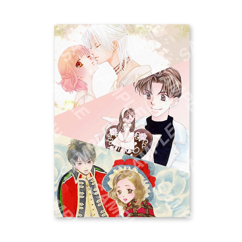 原画展「山田南平×日高万里×高尾滋 三人原画展 ~HAPPY Anniversary~」に入場した方には、山田南平先生の『オトナになる方法』より久美子と真吾、日高万里先生の『V・B・ローズ』よりあげはと紫、高尾滋先生の『てるてる×少年』より紫信と才蔵、3作品のそれぞれの描き下ろしイラストを使用した「オリジナルビジュアルチケット」をプレゼント。