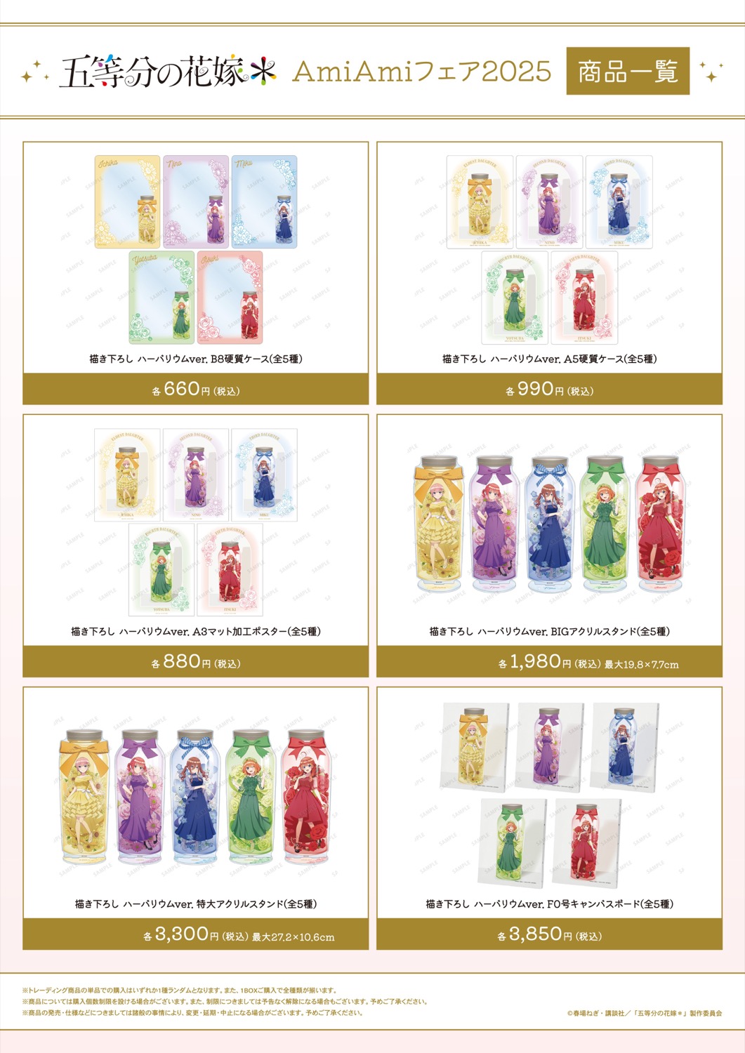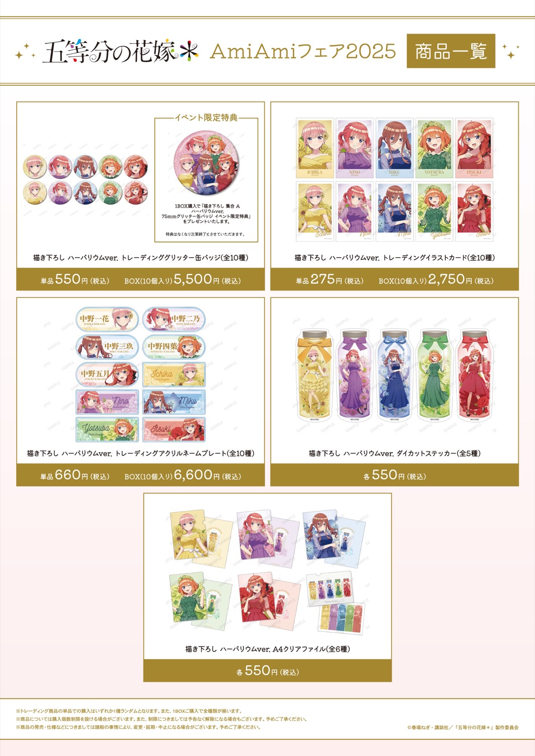 2025年11月7日よりあみあみにて開催される『TVスペシャルアニメ「五等分の花嫁*」 AmiAmiフェア2025』では、新規描き下ろしイラスト『ハーバリウムver.』を使用したグッズが登場!