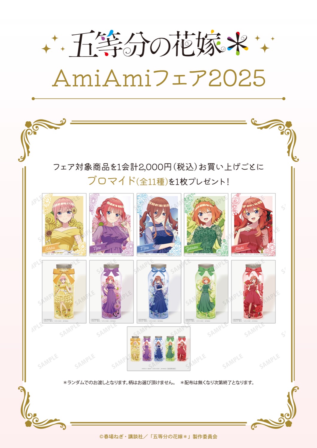 「五等分の花嫁* AmiAmiフェア2025」にて、イベント関連商品を2,000円(税込)ご購入ごとに、「イベント購入特典ブロマイド(11種)」をランダムで1枚プレゼント!