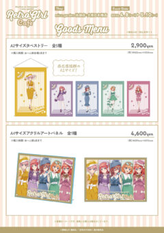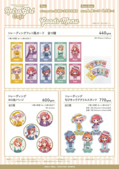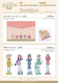 「Retro Girl Cafe」では、中野家の五つ子(一花・二乃・三玖・四葉・五月)がレトロモダンな衣装に身を包んだ描き下ろしイラストで登場!