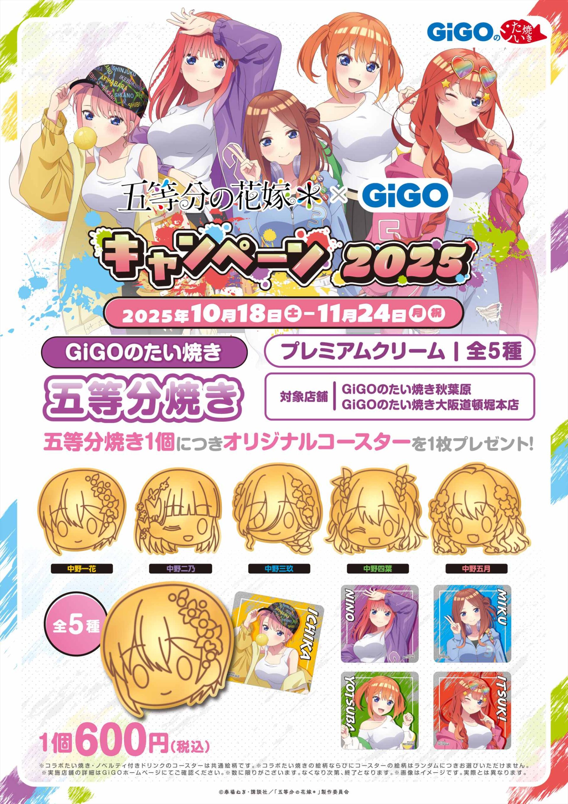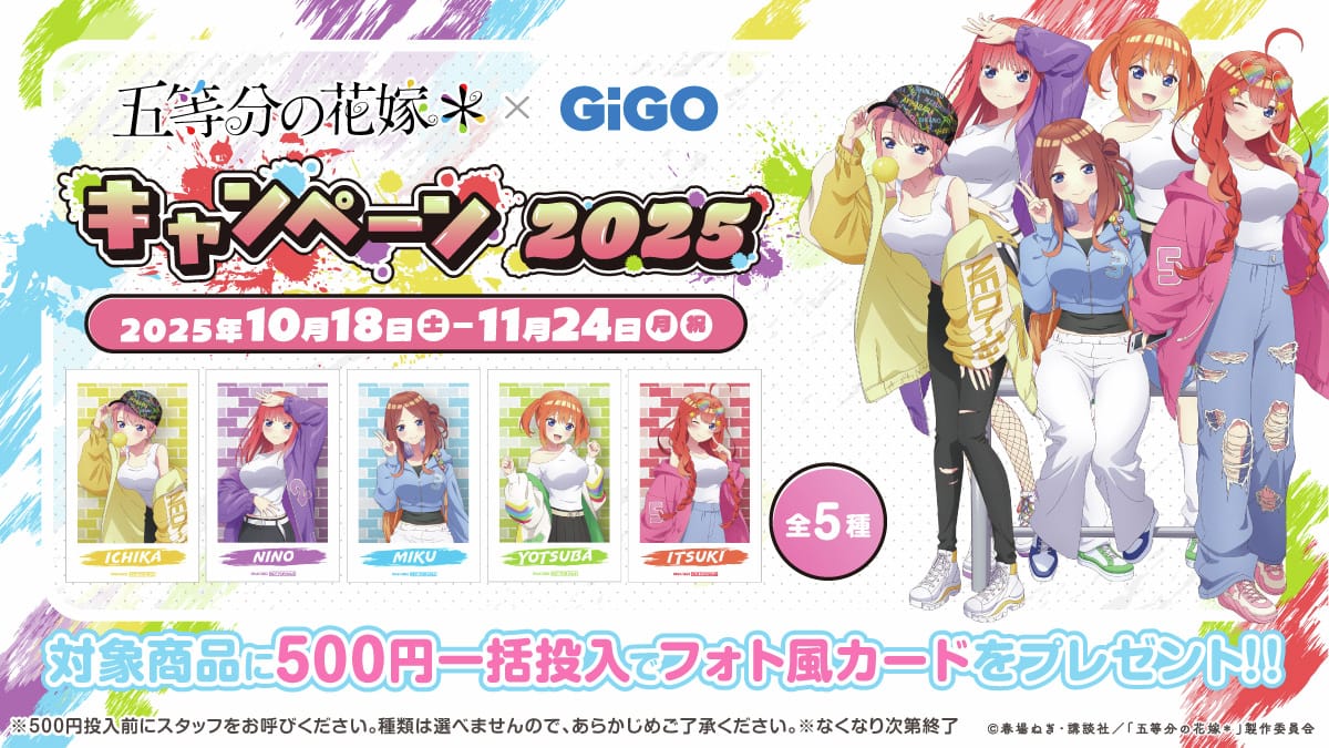 春場ねぎ先生による人気漫画を原作としたTVスペシャルアニメ「五等分の花嫁*」× GiGOによるコラボキャンペーンが、2025年10月18日〜11月24日までの期間限定で開催される。