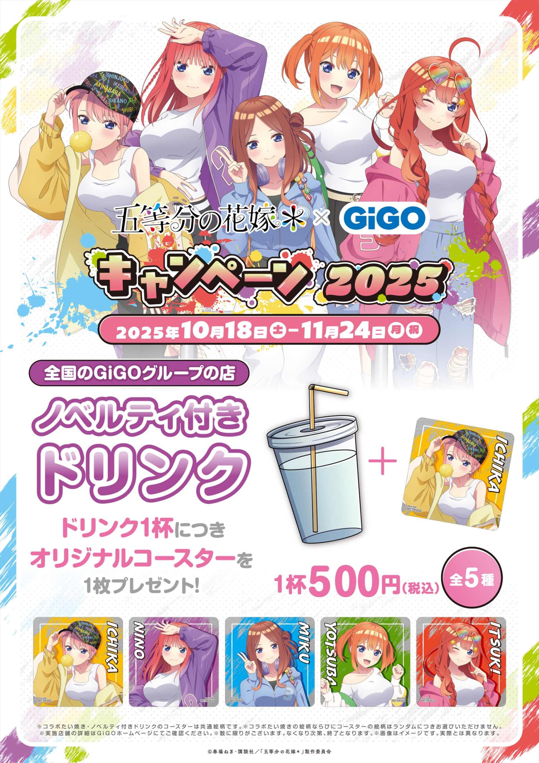 五等分の花嫁* × GiGOのノベルティー付きドリンク