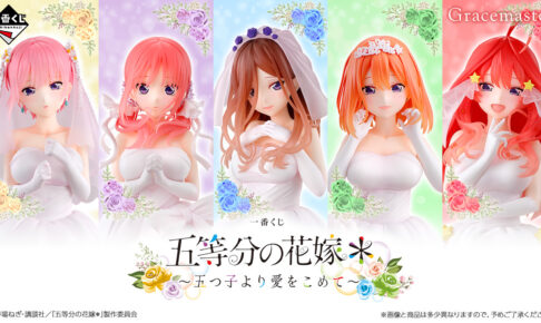 「一番くじ 五等分の花嫁* ~五つ子より愛をこめて~」では、2024年10月に発売された「一番くじ 五等分の花嫁* ~memorial collections~」で大好評を博したウェディングテーマの描きおろしイラストを元に、五つ子達が美少女フィギュアシリーズ「1/7 Gracemaster」になって登場!