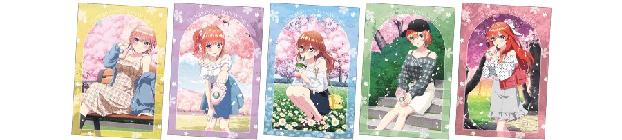 「五等分の花嫁*」ポップアップストアにて、グッズをお買い上げ2,000円(税込)毎に特典として「ポストカード 全5種」がランダムに1枚プレゼントされる。