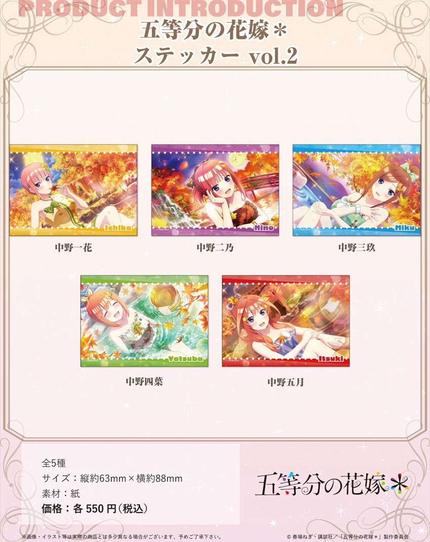 五等分の花嫁 プールや温泉など色々なデートシーンを描いた五つ子ちゃんの新作グッズラインナップ