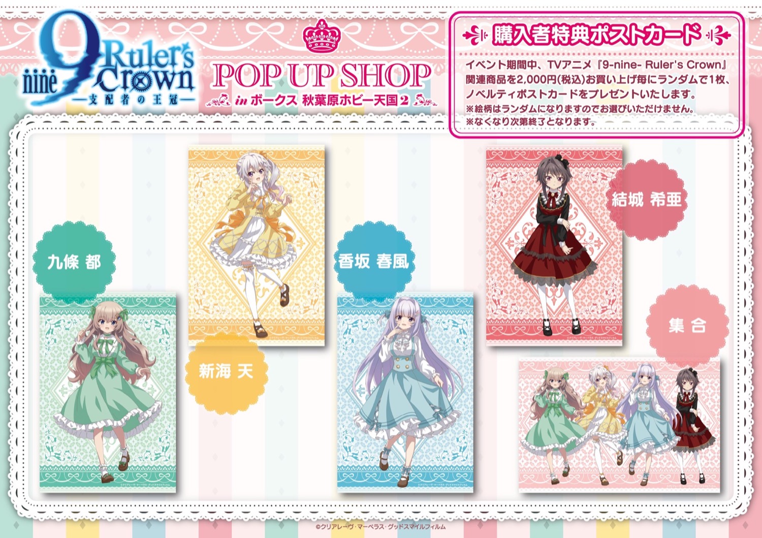 「TVアニメ『9-nine- Ruler's Crown』POP UP SHOP in ボークス秋葉原ホビー天国2」開催決定!