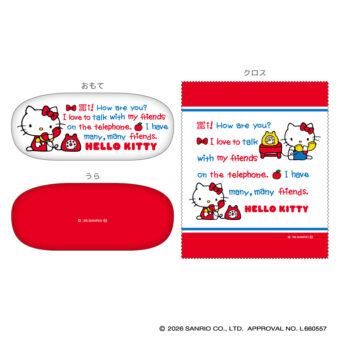 ハローキティ・いちごの王さまがいちごケーキを楽しむイラストを使用した限定商品「2連アクリルキーホルダー」「ミニタオル」や、「眼鏡ケース レッド / ブルー」「ステッカー3枚セット」「クリアマルチケースS」などがラインナップする。