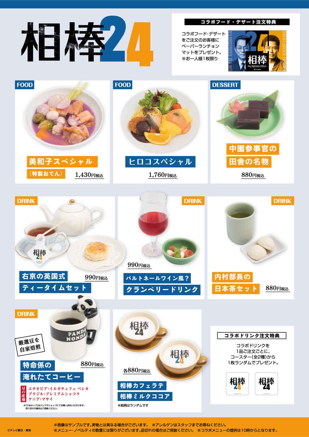 その他にも「相棒」の世界観をイメージした特製メニューが多数提供される。