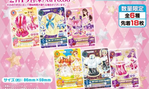 2026年2月19日 10時より全国のセブンイレブンにて開催される「アイカツ! コラボキャンペーン」では、対象のキャンディー菓子を一度に3個購入すると「アイカツ! カード 全6種」の中からお好きな1枚がプレゼントされる。