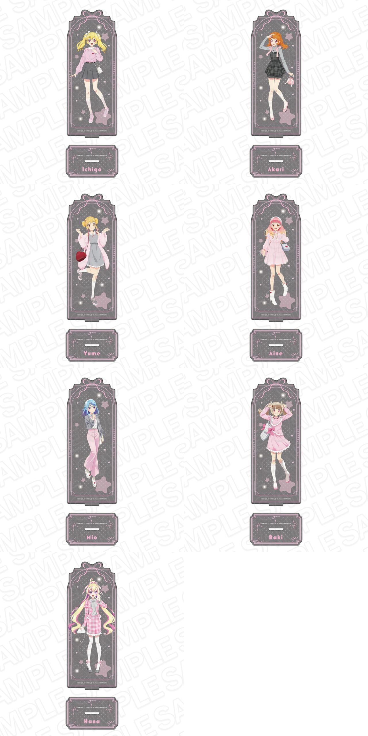 描き下ろしコーデに合わせたヘアスタイルで登場する、星宮いちご、大空あかり、虹野ゆめ、友希あいね、湊みお、姫石らき、ハナの7人に注目!